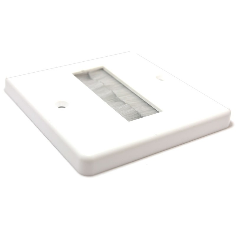 Slimline-Brush on a standard single white faceplate 85 x 85 Installation instructions included White finish Fits any standard back box Provides a professional finish Mount straight on to wall or on to UK back box Not supplied Cable entry dimensions WxH : 20 x 55mm