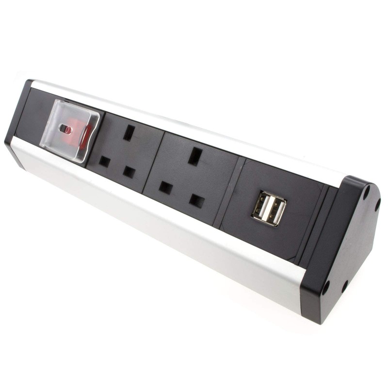 • kenable Desktop Bench Table Mountable PDU 2 x UK Sockets & 2 x USB Power Pod Switched [2xUK Switched/2xUSB]