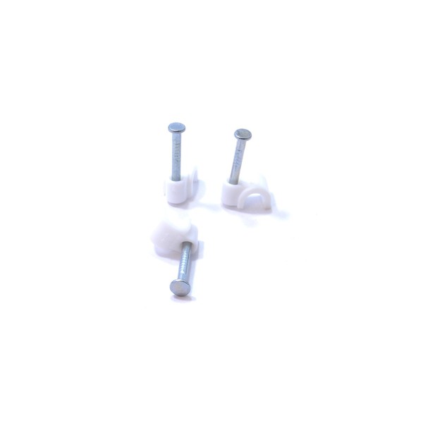 Tough PE clip Elasticity and shock resisting High impact nail attached Colour: white Fits round 3.5mm cable 100 per box