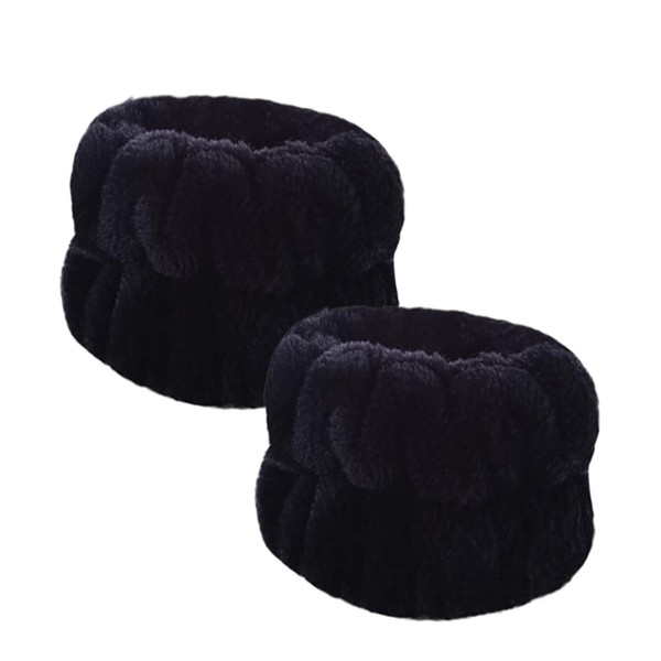 KENASTA 手首バンド 洗顔用 リストバンド 吸水 速乾 伸縮性あり マイクロファイバー製 ふわふわ柔らかい 肌触り良好 液体飛散防止 水濡れ防止 手首用汗止め 多機能 男女兼用 子供用 家事 ウォッシュバンド シュシュ タオルリストバンド (ブラック)