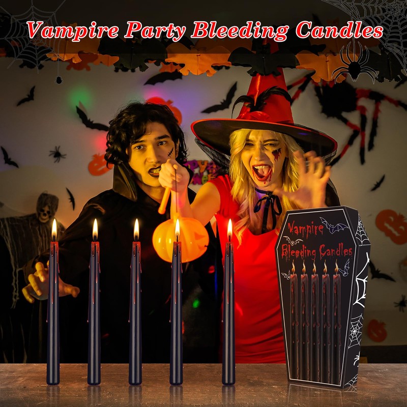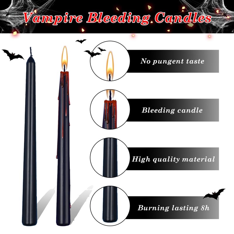 - Unique Design: the black candle is wrapped with a red candle inside. when lit, these candles look like they are bleeding, help you to create a horror atmosphere of vampire tears
