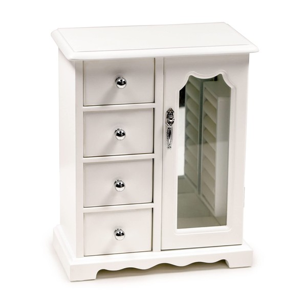 - Multi-functional Storage - With four drawers on the left side and eight ring slots on the right, this wood jewelry organizer provides ample space for your precious items. The carousel on top can be used as a display area for your jewelry, and the back of the carousel features a mirror (9.45"L x 3.54"W), allowing you to easily try on different pieces