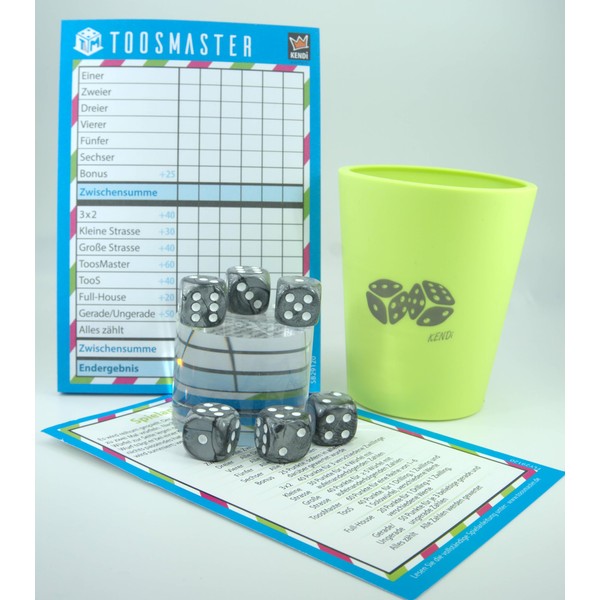 KENDi GAMES Soft Plastic Dice Cups - Apple Green - Print Good Luck - Includes 6 Acrylic Dice, TOOSMASTER Game Pad, Quick Start Guide & Value Chart - Dice Game Set