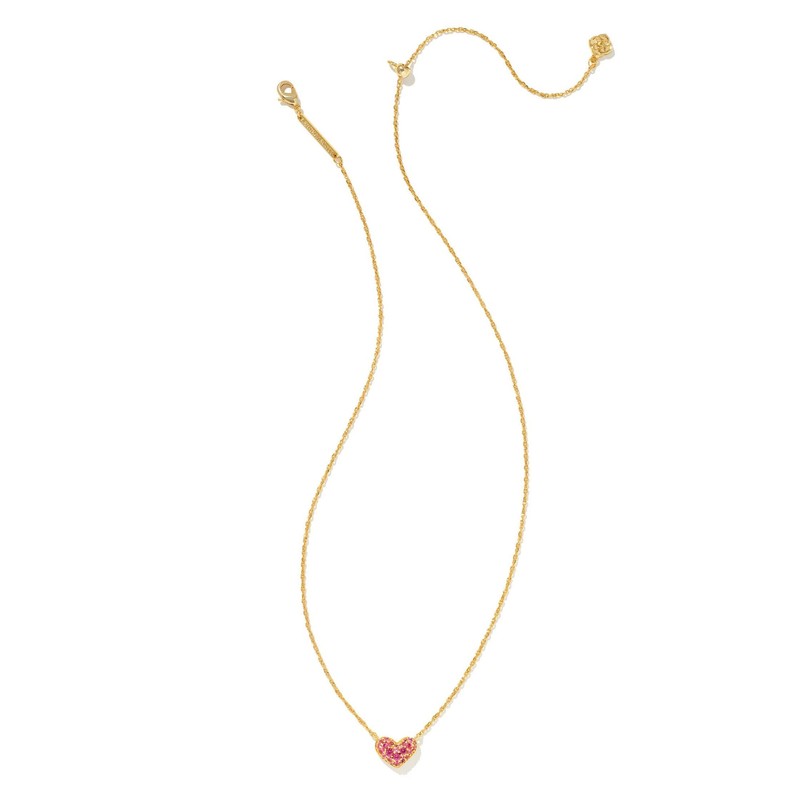 Kendra Scott Ari Pave Crystal Heart Necklace Gold Ruby Crystal One Size