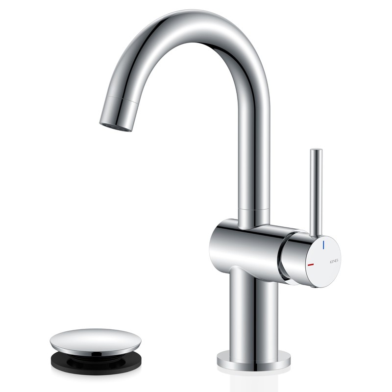 KENES Polished Chrome Bathroom Faucet Single Handle Modern Prep Wet Bar Sink Faucet Kitchen Faucet with Drain Assembly & Deck Plate, Farmhouse RV Camper Outdoor Utility Faucet, KE-9005B-5