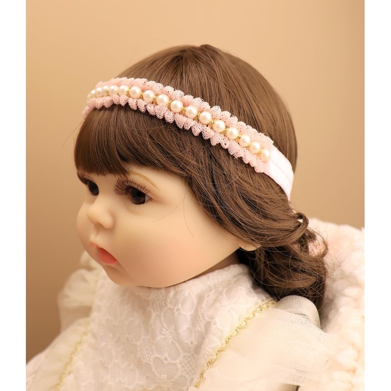- Material-- The infant elastic headband is made of high-quality lace fabric, faux pearls and elastic band, soft and lightweight, comfortable for little baby to wear