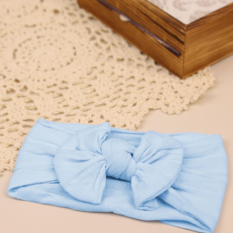 Kenjudess Super Stretchy Nylon Baby Girl Headbands with Big Bows Soft Elastic Knot Head Wrap Hair Accessories for Newborn Infant Toddler Kids (Blue, Standard)