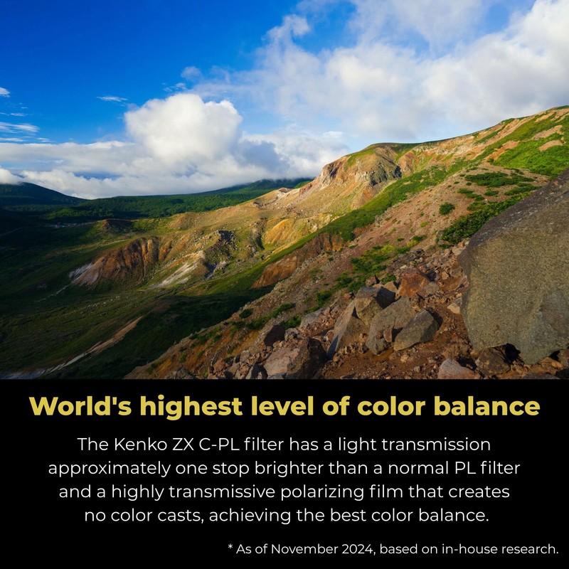 - Kenko ZX C-PL N polarising filter, which offers the world's highest colour balance and ultra-high resolution: The ZX C-PL N is about one aperture brighter than a standard PL filter and achieves the best colour balance thanks to the use of a highly transmissive polarising film without colour shifting.