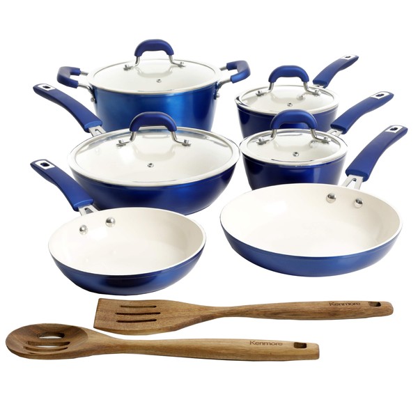 Kenmore Arlington Nonstick Ceramic Coated Forged Aluminum Induction Cookware with Bakelite Handles, 12-Piece Set, Metallic Blue