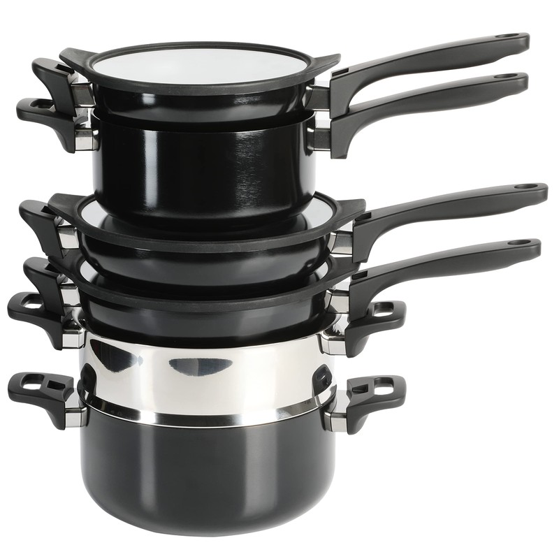 Kenmore Elite Grayson Stackable Platinum Nonstick Forged Aluminum Induction Cookware Set, 9-Piece, Black