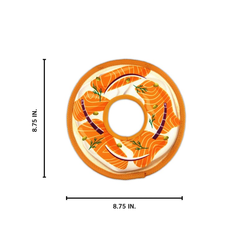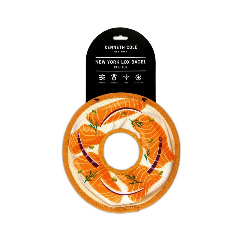 Kenneth Cole Stuffing-Free Durable New York Bagel Dog Toy – Chew-Resistant Nylon, Squeaker, Crinkle, and All-Day Play