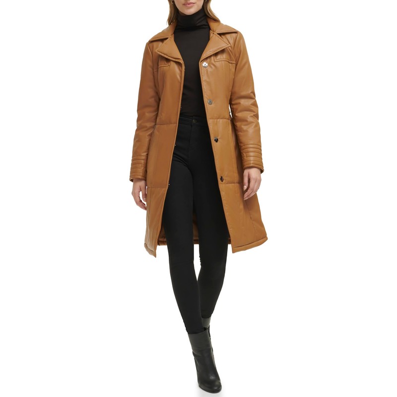 Kenneth Cole Women's Belted Notch Collar Coat, Knee Length TAN, Medium