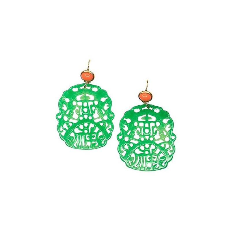 Kenneth Jay Lane Colorful Carved Resin Large Drop Pierced Leverback Earrings