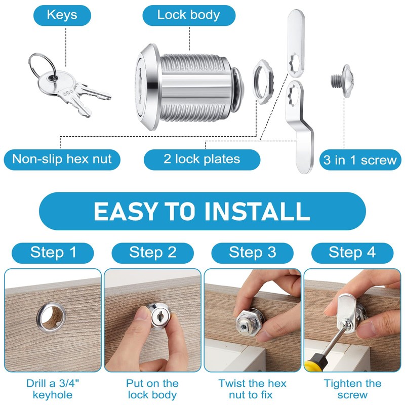 - Wide Range of Usages: these cabinet locks with keys are suitable for filing cabinets, display cabinets, lockers, RV doors, cabinet doors, drawers, tool boxes, mailboxes and locks for camping vehicles, provide you with a secure and privacy environment for your daily life