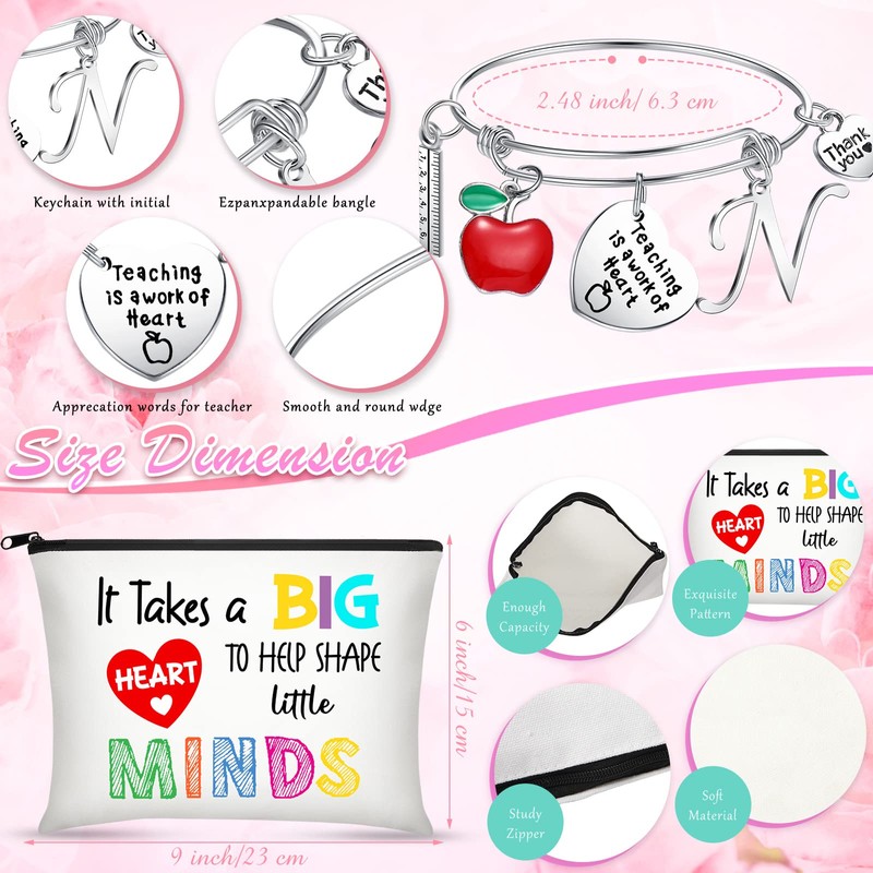 - Wide Applications: these presents for teachers are adorable and practical; And this makeup bag can be applied as a travel bag, storage pouch, purse, stationery case and more, Charming bracelet is not rust, change color or tarnish, the engraved words are clear and the extra charms are secure, simple but stylish