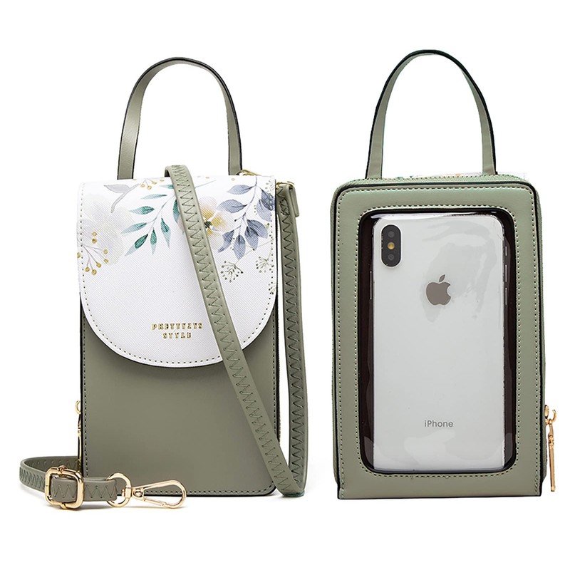 - Simple and cute floral pale colors that are easy to match with any styling, this mini shoulder strap is flap-and-zip type. The touchscreen type allows you to easily operate your smartphone while you put it in, and it is full of smart and convenient features. Compatible with iPhone 14 Pro Max size (6.7 inch size). *The touch screen is made of a thick and durable type with a focus on protecting your smartphone. Please note that when using a screen protector, the response may be dull, depending on the sheet used