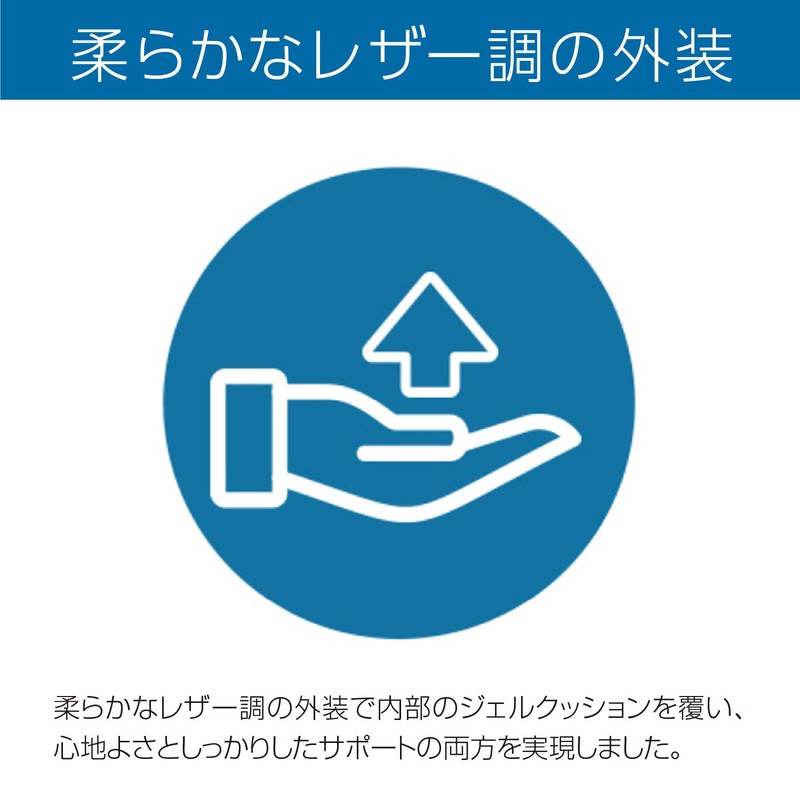 - Soft leather-like exterior covers gel cushion inside for both comfort and support