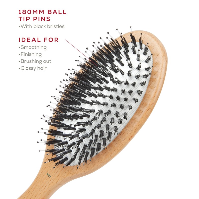 - The durable vegan bristle hair brush with ball tipped nylon pins effectively detangle hair without causing breakage or damage, perfect for gently removing knots and tangles, stimulating the scalp and maintaining the health and shine of your hair