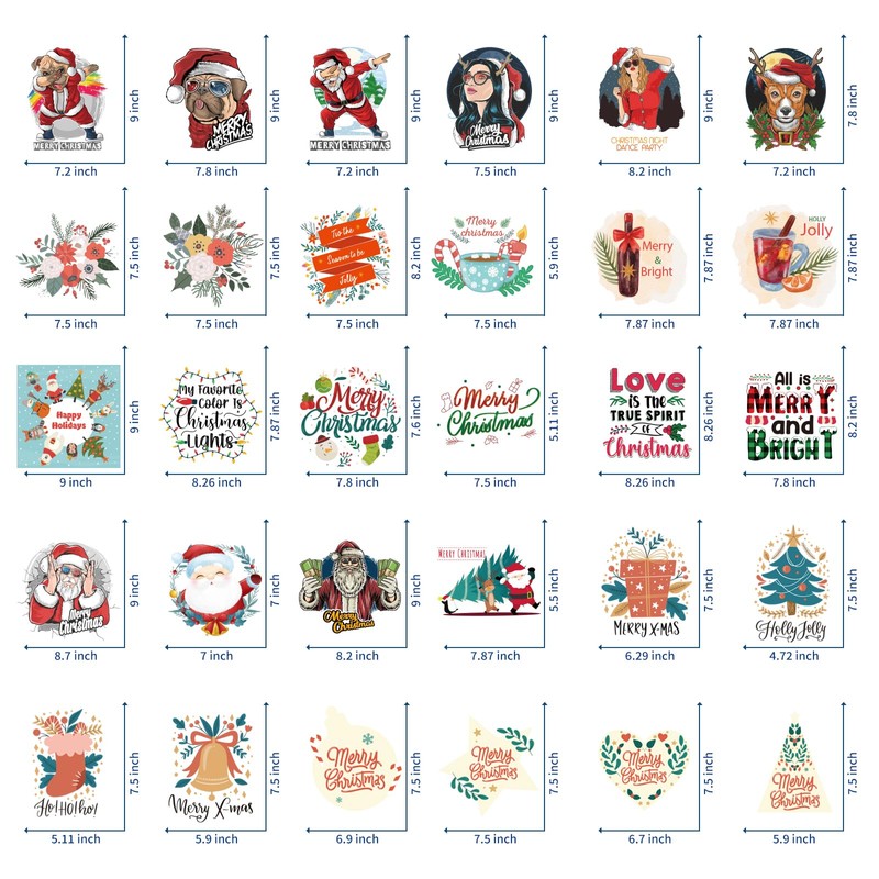 - 【DTF Transfers Ready to Press 】Iron on Transfers dtf transfer for shirts set,you will receive 30 pieces of christmas iron on transfers with different designs