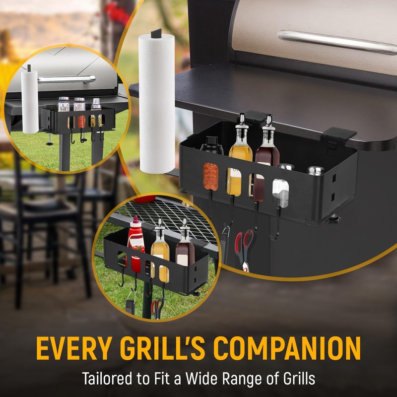 - Convenient & Versatile: Our BBQ organizer is more than just a handy accessory; it's your go-to companion for every grilling escapade. Keeping your tools and sauces within easy reach, it amplifies your cooking prowess and elevates your grilling game. Experience barbecues like never before with our grill utensil organizer