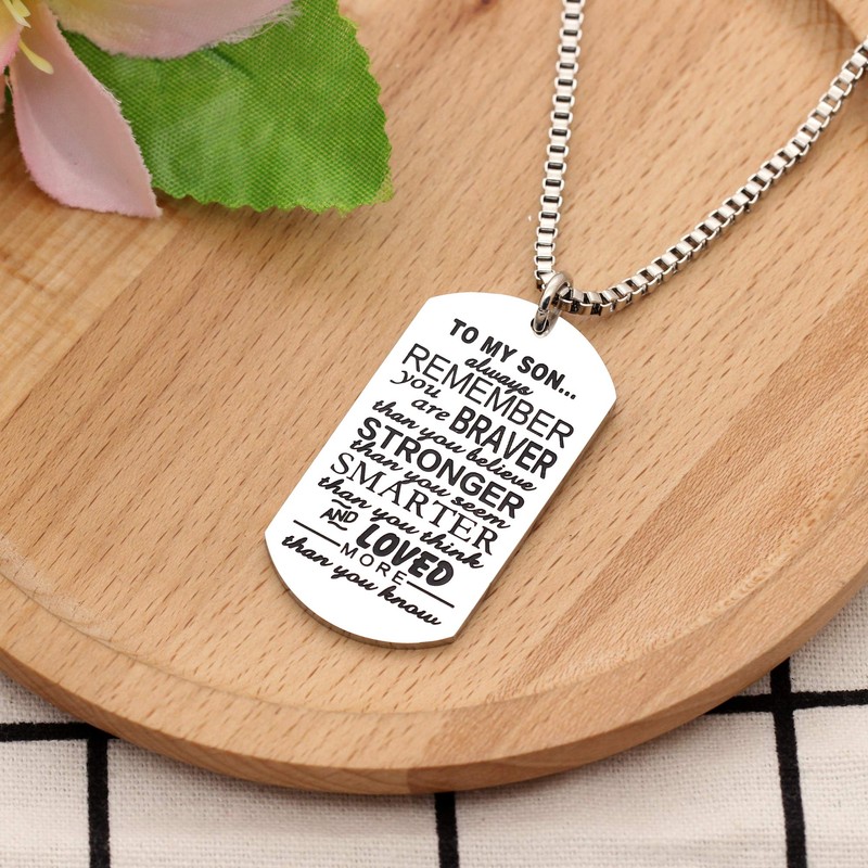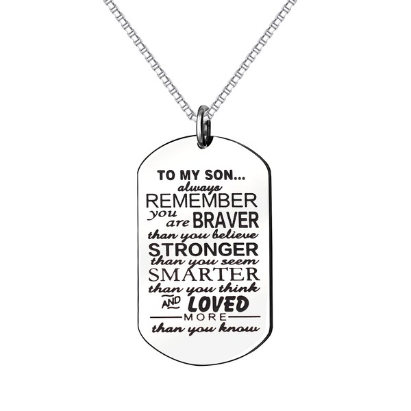 KENYG Inspirational Necklace To My Son Dog Tag Box Chain Venetian chain Necklace Mens Fashion Jewellery