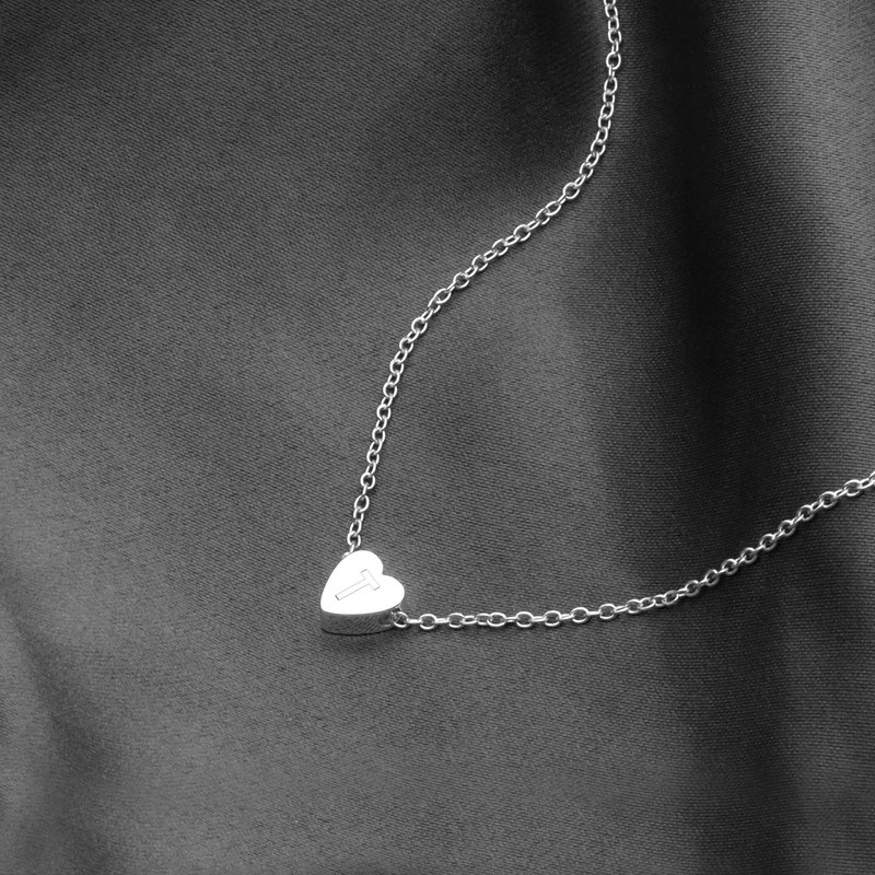 KENYG S925 Silver A-Z Capital Initial Heart Pendant Necklaces for Women Girls Lady for Christmas Birthday Graduation,Women Choker Tiny Necklaces Fashion Jewellery (T)