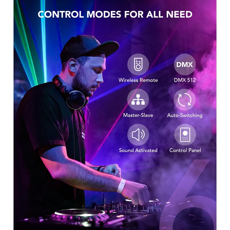 - 【Programmable DMX & RF Control Laser Lights】Ideal for both novices and professionals. Easily control the party laser lights' changes and movements with a simple click, or enjoy the sound-activated mode for effortless yet stunning effects. For professionals, programmable DMX512 system offers precision for DJ laser light shows, delivering endless surprises