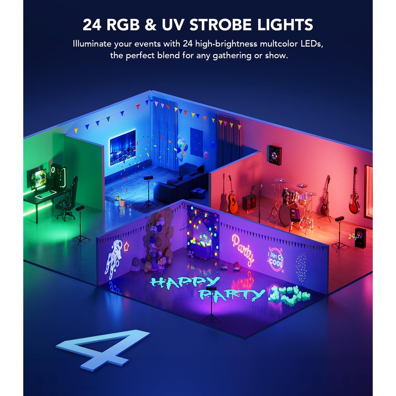 - 【24 RGB & UV Strobe Bar Lights】12 RGB laser lights create vibrant party atmospheres for gigs, stages, and game rooms. 12 UV black lights add mystery to clubs and Halloween parties with Strobe-mode, sparking instant enthusiasm