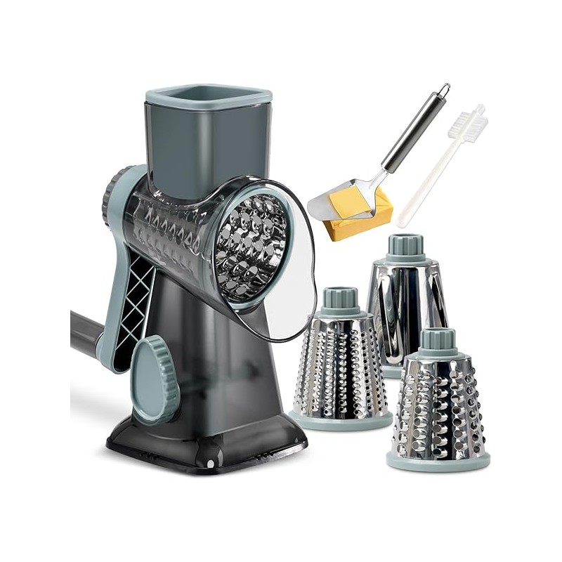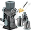 KEOUKE Rotary Cheese Grater with Handle Vegetable Cheese Shredder Slicer Grater for Kitchen 3 Changeable Blades for Cheese Potato Zucchini Nuts Chocolate - GreyBlue