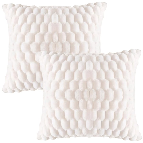 KEOYA Pillow Covers 16x16 Inch Set of 2 Fuzzy Elegant Decorative Throw Pillow Case Plush Square Cushion Covers Sofa Couch Bed Living Room Excluding Insert White