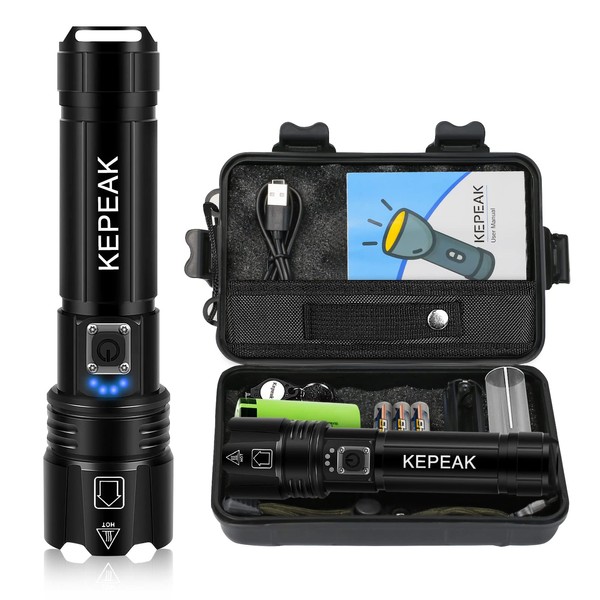 KEPEAK Flash Light, 5 Modes Rechargeable Flashlights, Super Bright LED Flash Lights, High Powered, Zoomable, Tactical Handheld Waterproof Flashlight for Camping, Emergency