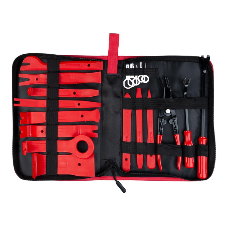 - 19 PIECE REMOVAL TOOLS KIT – Keple car interior and exterior removal tools set includes: 11 PCs interior trim disassemble tools, 2PCs release tools, 5PCs stereo removal tools, 1 PC roof light clamp, 1PC portable zipper storage pouch.
