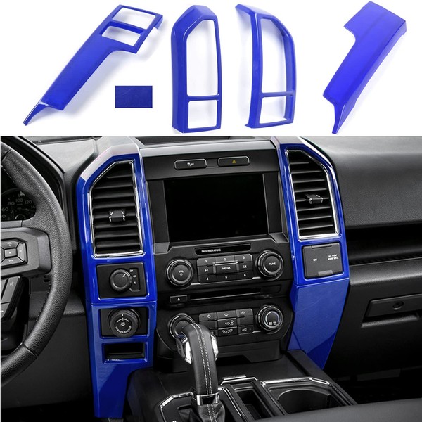 Keptrim for F150 Blue Central Console Air Conditioner Panel Trim for 2015 2016 2017 2018 2019 2020 Ford F150, 5pcs