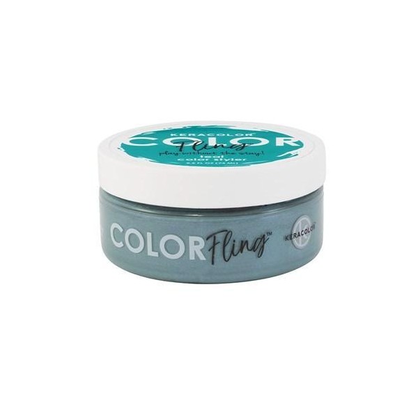 What are the benefits and features of Keracolor Color Fling Teal 74ml?- Temporary hair colour styling cream that adds highlights and hints of colour.