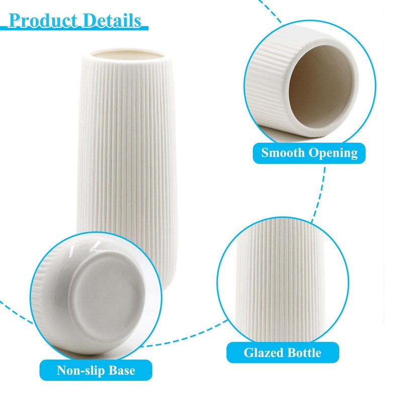 - 【Minimalistisches Design】Die Blumenvase mit Rippenmuster ist sehr einfach und modern, in eleganter weißer Farbe, die Ihrem Raum mehr Raffinesse verleiht.