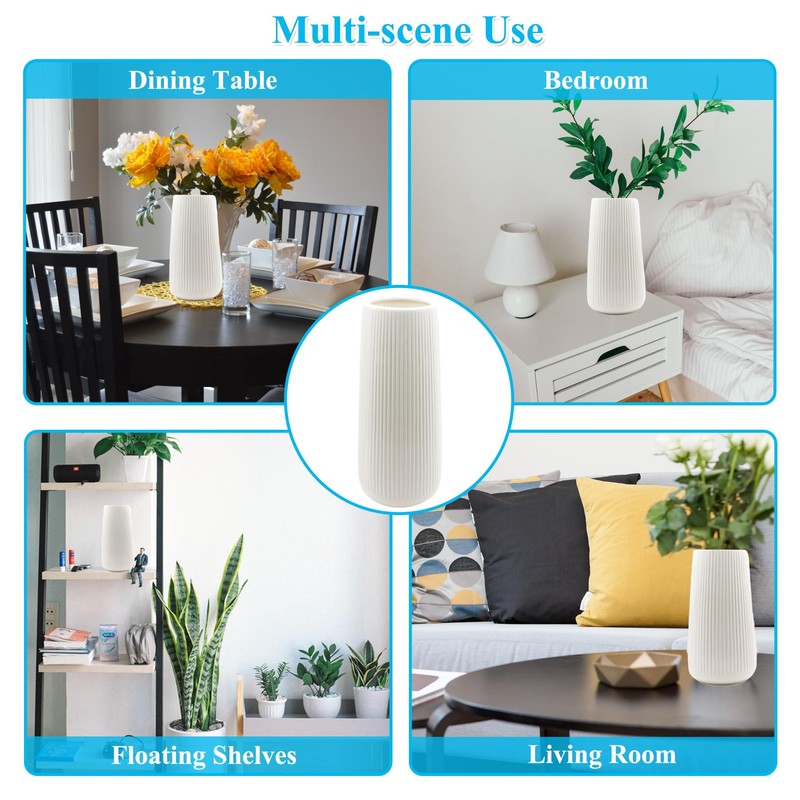 - 【Minimalistisches Design】Die Blumenvase mit Rippenmuster ist sehr einfach und modern, in eleganter weißer Farbe, die Ihrem Raum mehr Raffinesse verleiht.