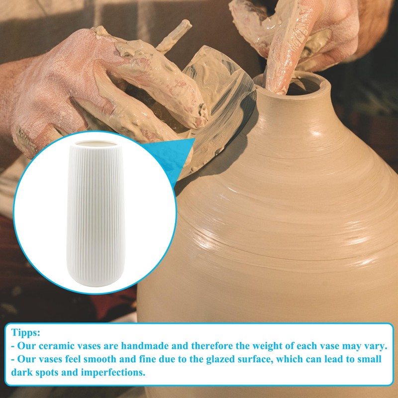 - 【Weiße Keramikvase Größe】Ca. 6.5CM(L) x 8.7CM(W) x 20CM(H). Die vasen deko ist ungefähr 20CM in der Höhe, Durchmesser der Öffnung ca. 5,5 cm und 8.7CM Durchmesser an der Basis.