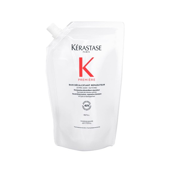 Kérastase Première, Repairing and Calcium Reducing Shampoo for Damaged Hair, with Citric Acid and Glycine, Bain Décalcifiant Réparateur Shampoo, 500 ml Refill Pack