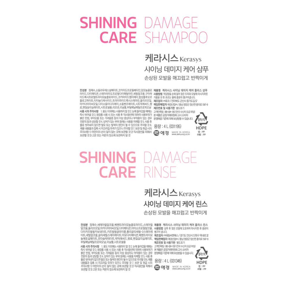 케라시스 샤이닝 데미지 샴푸 4L 용기 2개