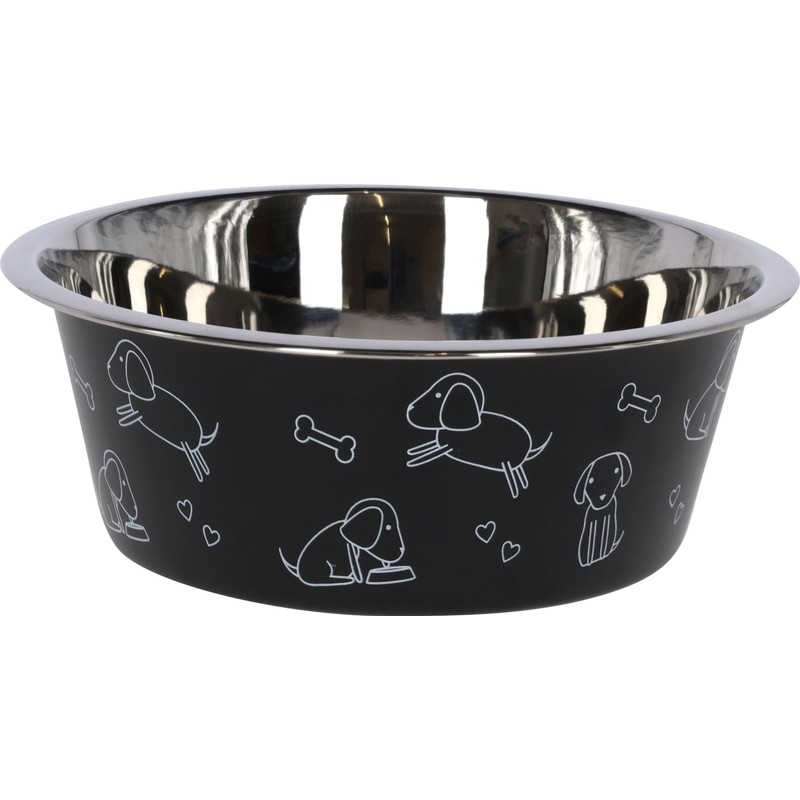 Kerbl Pet Stainless Steel Bowl Approx. 1800 ml Black with Motif