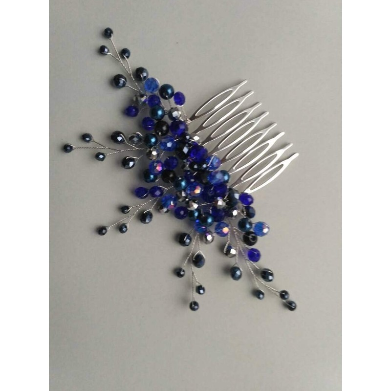 Kercisbeauty - Peine para el pelo hecho a mano con cuentas de cristal azul marino para novias nupciales y accesorios para el pelo