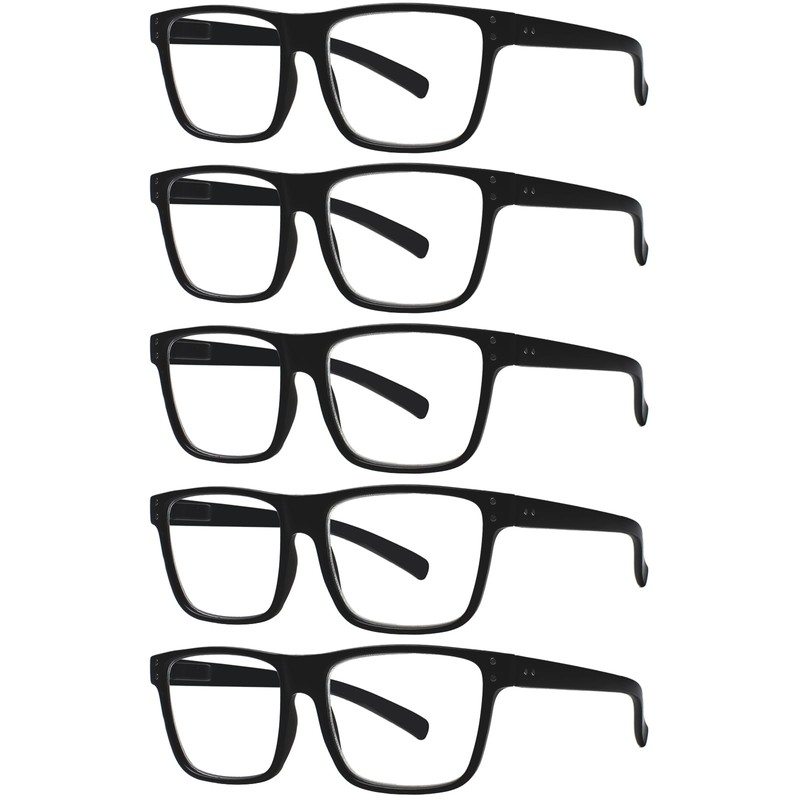 Kerecsen 5 Pack Oversized Reading Glasses Blue Light Blocking Square Large Frame Readers for Men and Women (5 Black, 2.50, x)