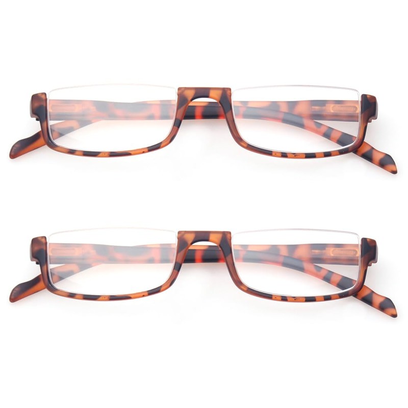Kerecsen Reading glasses 2 Pair Half Moon Half Frame Readers Spring Hinge Men and Women Glasses (2 Pack Tortoise, 2.25)