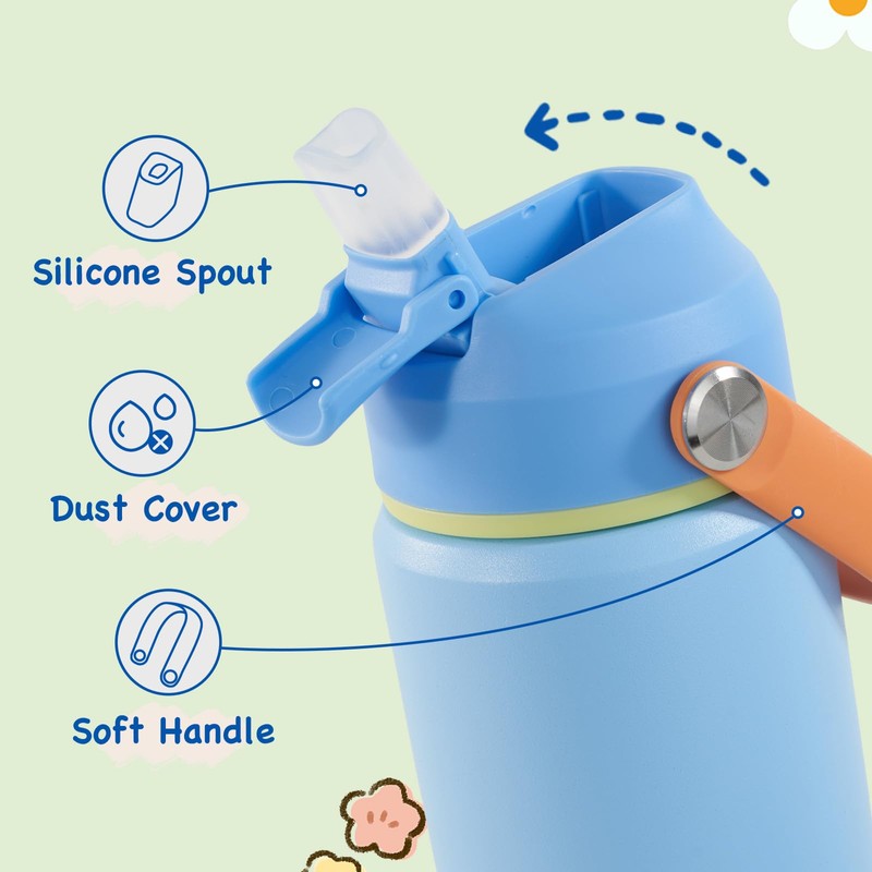 - EASY TO USE - The kids water bottle’s lid is equipped with a soft strap which can rotate 180°. Our toddler cup is lightweight and easy to carry, your child can stay hydrated no matter where they go. Perfect for school, outdoor activities, and travel.