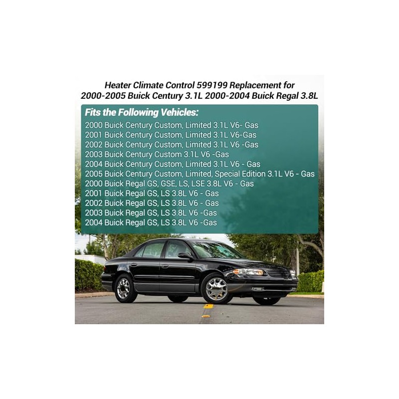 - [Compatibility Vehicle]: Our car AC heater climate control switch panel for Buick Century /Regalis perfectly compatible with 2000-2005 Buick Century3.1L V6-Gas, 2000-2004 Buick Regal 3.8L V6-Gas. For more models, please refer to amazonconfirmedfit.