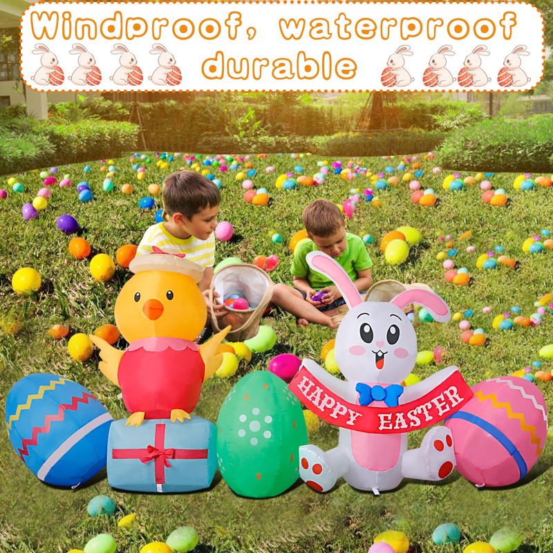 - 【Bright Lights】:Built-in 6pcs LED lights,Bright LEDS light up your lawn with joy,this happy easter outdoor decoration will add fun and color to your outdoor holiday decoration; when this Easter blow up yard decoration lights up in your yard, it will be attractive and catching everyone's attention