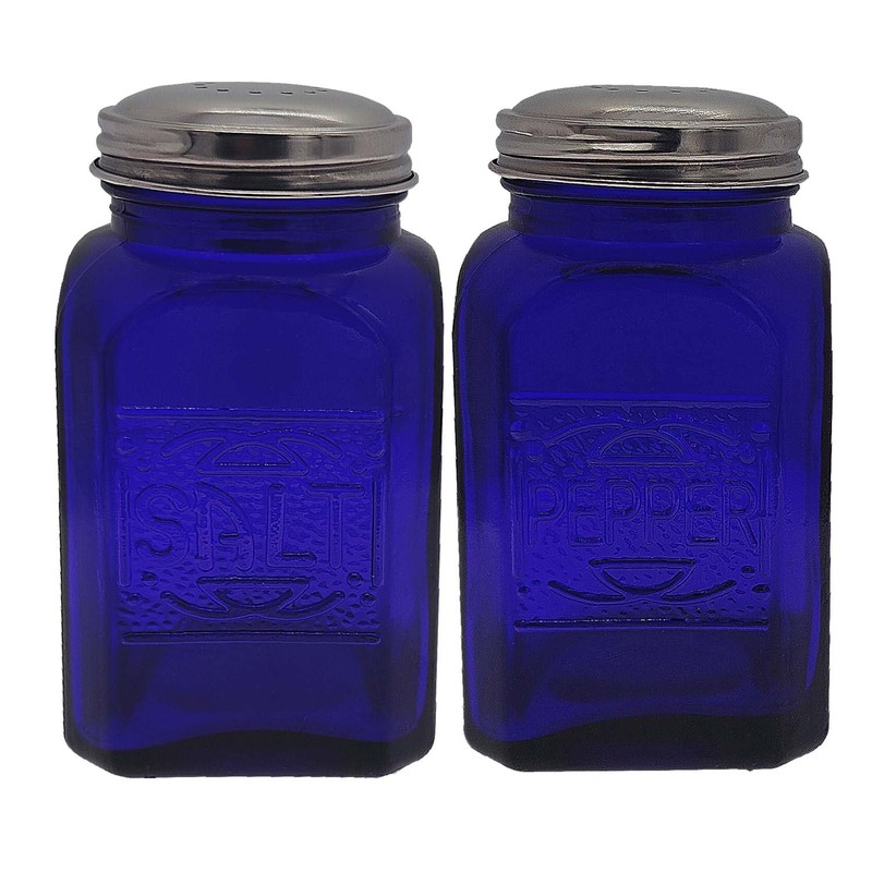 - These salt and pepper shakers are made of cobalt blue glass, not clear glass painted