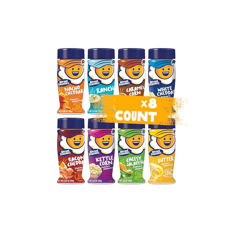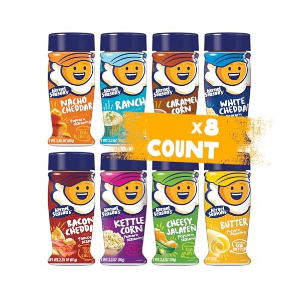 Kernel Season's Popcorn Seasoning Full Size Jars Variety Pack, Retail Sizes (Pack of 8)