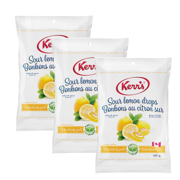 - Kerr's Sour lemon drops kerrs PACK OF 3 - proudly made in Canada 150gr each