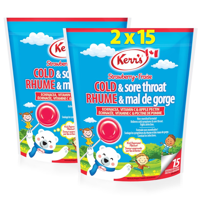 Kerr's Strawberry COLD & Sore Throat Kids Lozenges 2x15 count